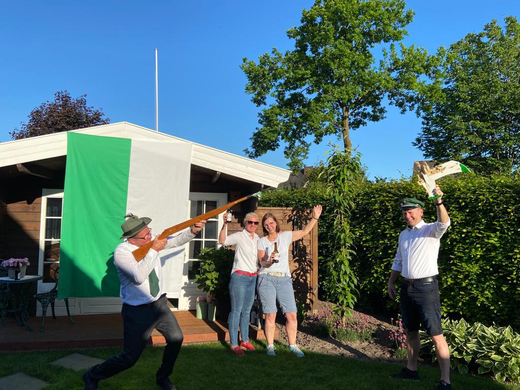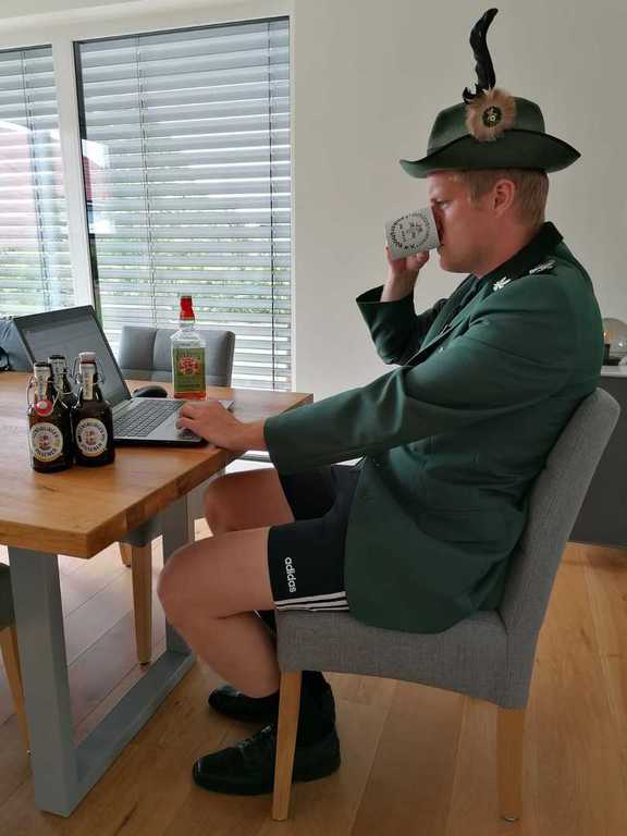 Leider konnten wir während der Corona-Pandemie 2020-2021 unser Schützenfest nicht wie gewohnt feiern. Die Schützen waren aber auch im "Home-Office" gut gelaunt...